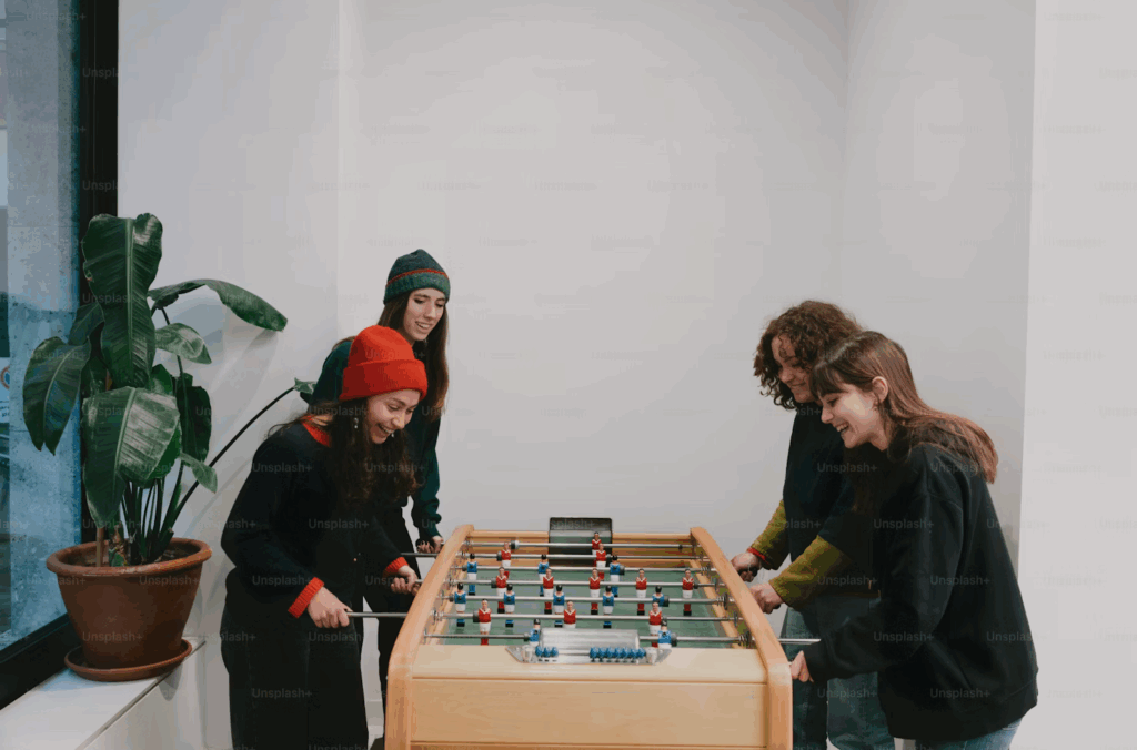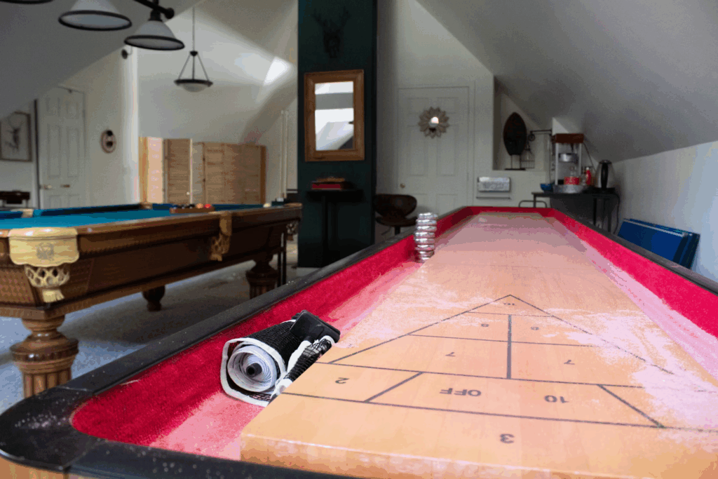 - A family game room featuring timeless favorites like air hockey, billiards, and board games